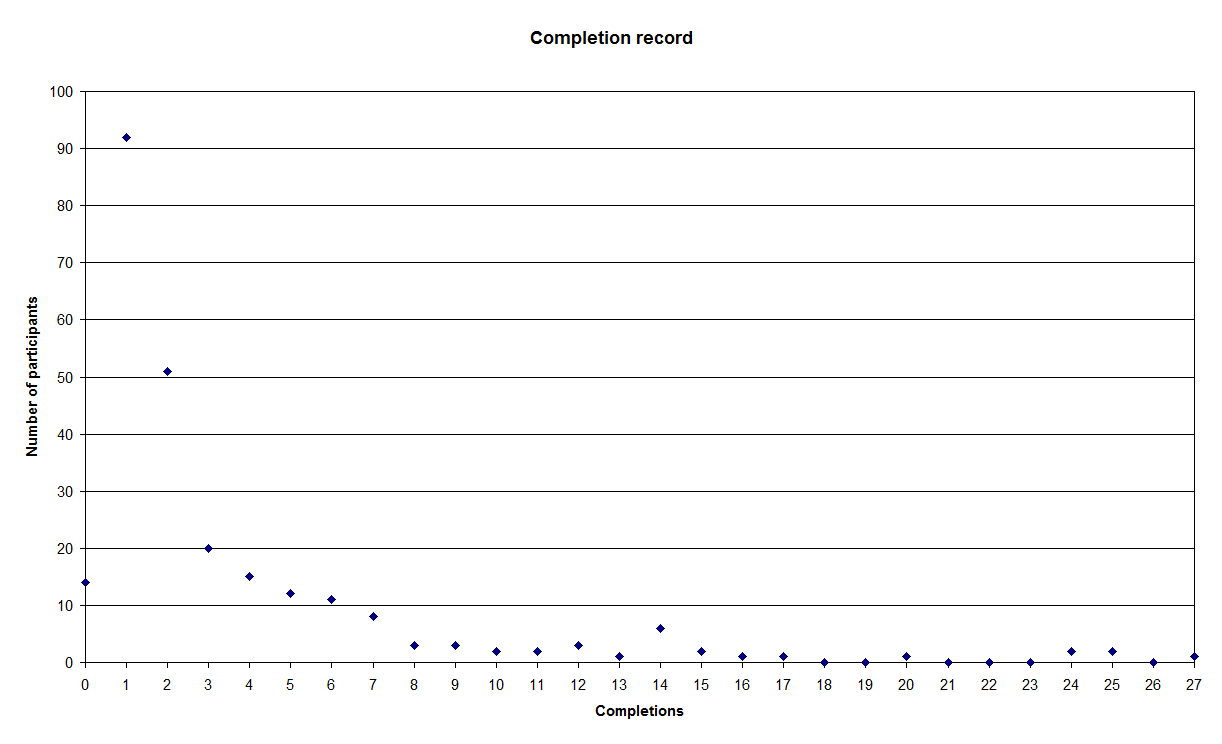 Statistically, the numbers are too small to make firm conclusions, but as previously observed 'No Finish' is second only to 'Finished Once'.