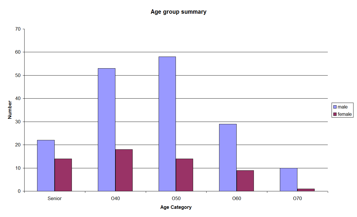 There were around 70 in both the 40-49 and 50-59 year range (~20% ladies).