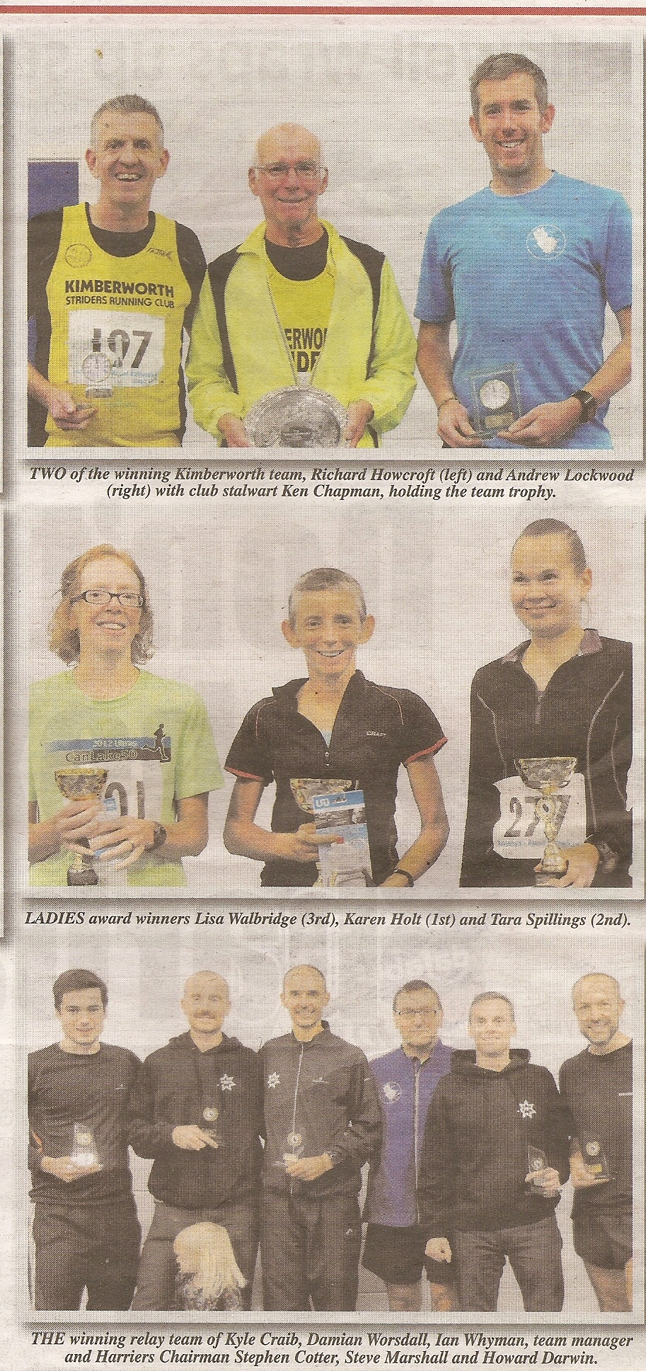 REIGNING champion Kevin Hoult made it a double triumph in Rowbotham's Round Rotherham grueller, running to a new personal best ahead of local ace Kevin Doyle. . The Stadium Runners man from Huddersfield improved on his 2015 time by an impressive 19 minutes over the 50-mile distance while Kimberworth Strider Doyle finished strongly to take the runners-up slot. At Woodsetts, the 30 mile mark Hoult led while following in hot pursuit just eight minutes behind was Ken Sutor from Cheshire Hash House Harriers, with Doyle following on 14 minutes later. Hoult held on to clock 6 hours 29 minutes, while Sutor ran out of steam to eventually finish eighth. Doyle kept up his momentum to claim second in 7:27 while Martin Terry followed in third place 15 minutes later. In the ladies' race last year's joint winners Lizzie Hutson and Susan Keens opted to run in the relays, leaving the event wide open. 2013 winner Karen Nash (Runfurther) showed the way by winning in 8:35, ahead of Tara Spillings (unattached) in 8:51. Lisa Walbridge (100 Marathon Club) was just 30 seconds behind in third. First team trophies were awarded once again to dominant Kimberworth Striders, who also picked up the winning team trophy in 2013, 2014 and 2015. One hundred and ninety three runners and walkers finished the event with 30 retirees. Many of these were first timers not aware of the strict time limits imposed. The first Rotherham Harrier home, collecting the Ralph Rowbotham Trophy, was Andrew Roscamp in his second year of completing the course. He improved his time by almost ten minutes from the year before. Harriers' chairman Stephen Cotter took it upon himself to organise a very strong men's team to challenge the usual strong team from Clowne Road Runners. Friendly banter and rivalry in the few days leading up to the race was started by Clowne who realised that their team had a race on their hands. That's how it turned out as Rotherham finished first in 5:16, three minutes short of the October record set by Clowne in 2012. Harriers finished 12 minutes ahead. The ladies winning team was 7 Fast, 1 Furious (Kimberworth Striders) who were eighth overall in 6:32. Striders Ladies A also took first place in their category in 6:32. The mixed team winners were Wildhogs (Handsworth Roadhogs), who were third overall in 5:59. Said senior organiser Sharon Burton: "The camaraderie and team spirit on the day is amazing. As usual, many, many thanks go to the volunteers that make it happen and put in a tremendous amount of time, effort and commitment to make it successful on the day. "In particular, the checkpoint officials who are always friendly, helpful and accommodating to the runners, walkers and relay teams. A special mention also must go to my team of Brian Harney, Jim Brogan, Kevin Thomas and Henry Marston who put in hours of work leading up to the event to make it the success that it is."