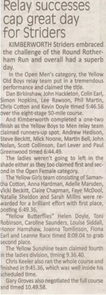 Take me to the Round Rotherham page, RHAC page, Full Results Page