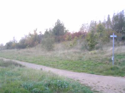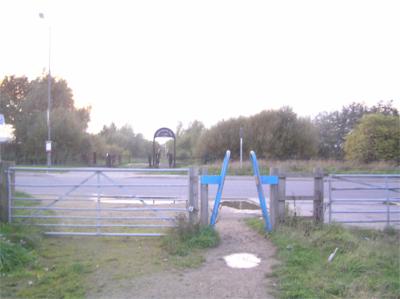 Retail Park. Cross Rd, R of Morrison's, down slope, still following surfaced