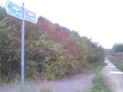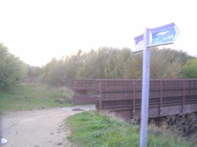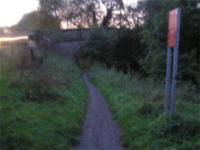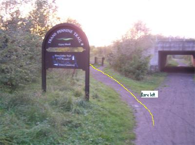 ![]() ![]() Cross road, under arch, then before bridge fork left at TPT sign |