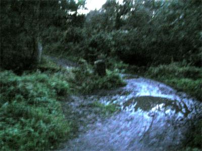 bear R after clear area (through muddy dip!), |
